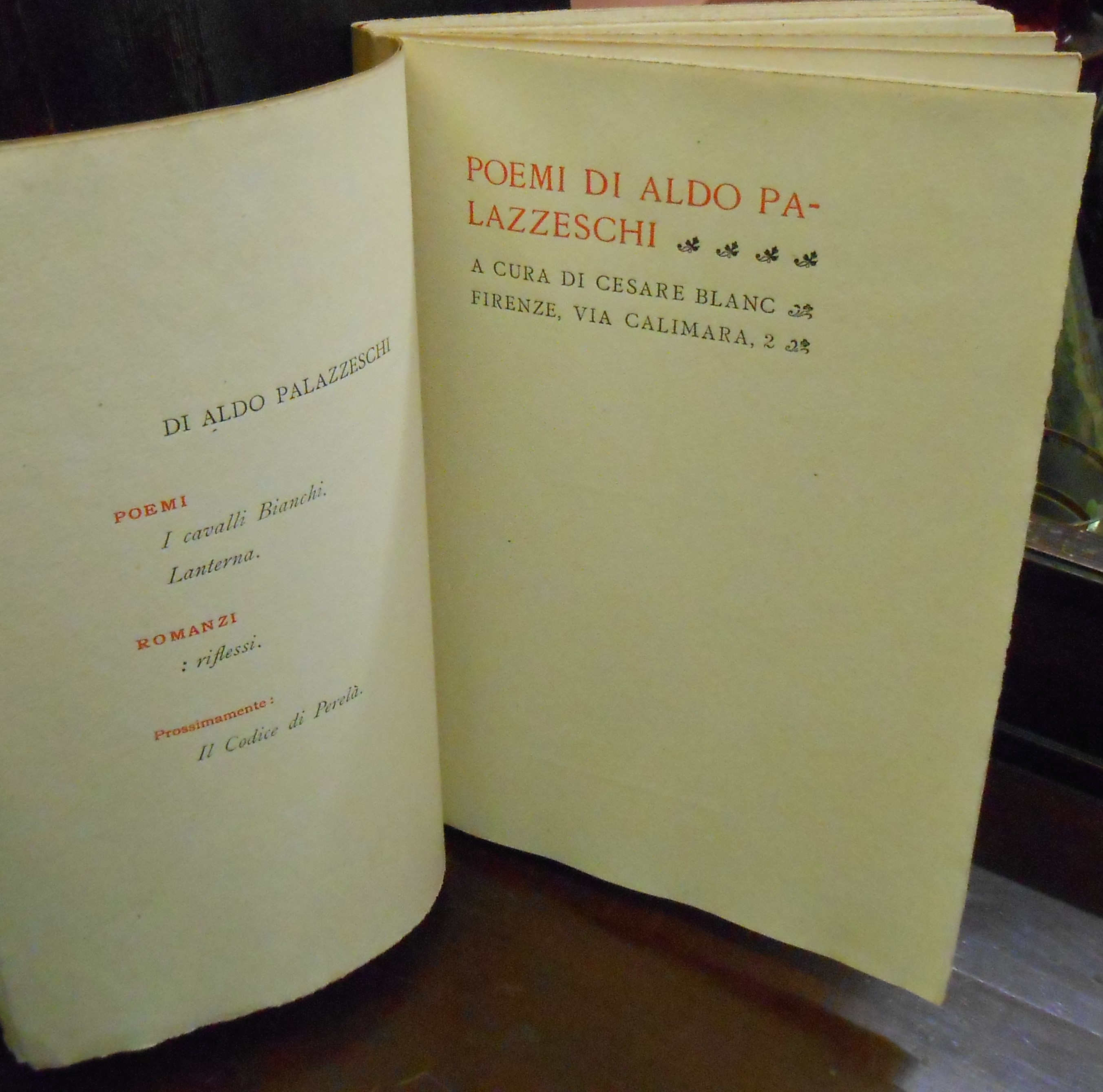 POEMI DI ALDO PALAZZESCHI - PRIMA EDIZIONE - A CURA DI CESARE BLANC
