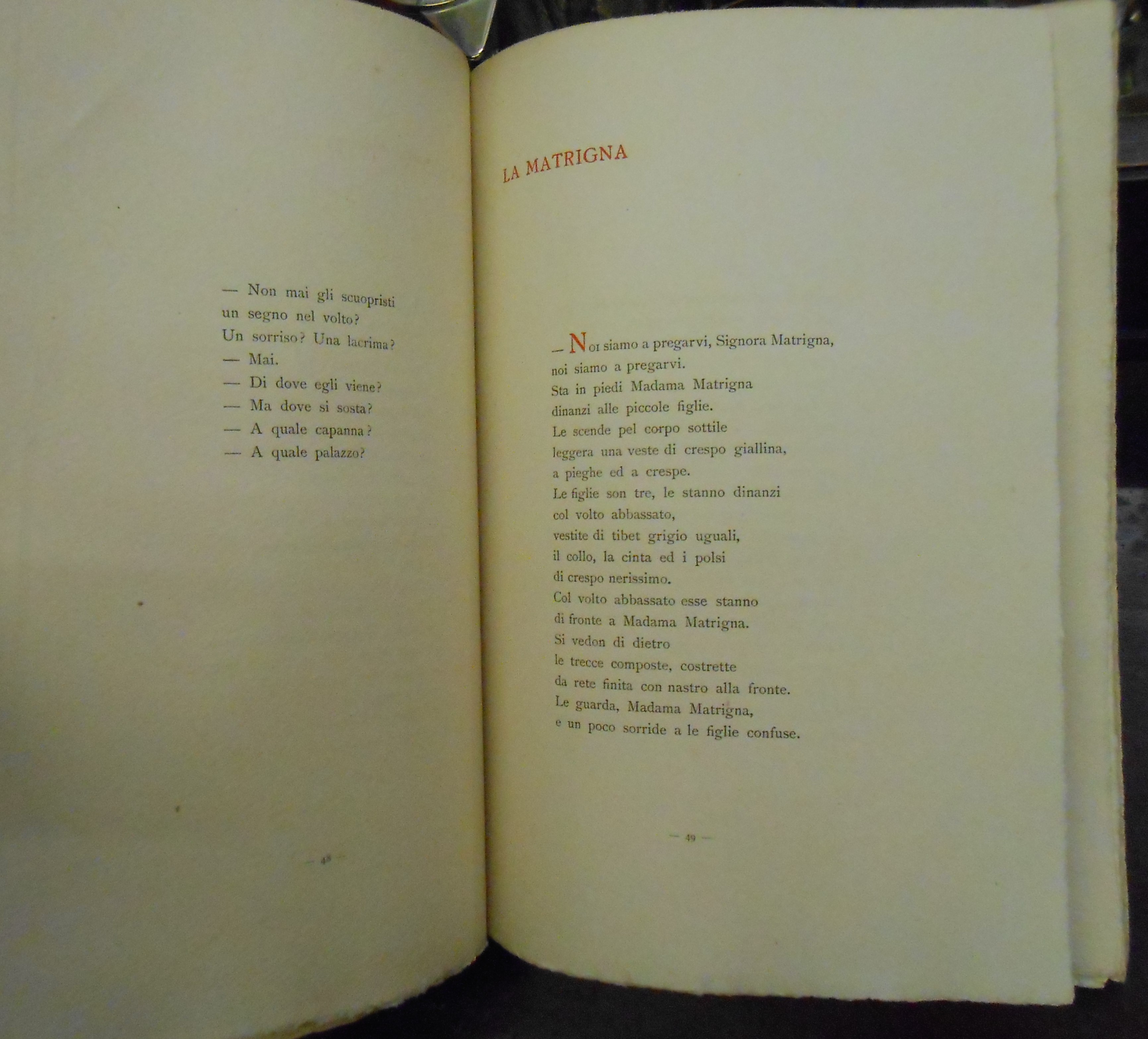 Note: LEGATURA IN BROSSURA EDITORIALE ILLUSTRATA A DOPPIO COLORE NERO E ROSSO, VOLUME CONSIDERATO TRA I PIU’ RARI DELLA LETTERATURA DEI PRIMI DEL ’900. VOLUME IN BARBE ORIGINALI, TALVOLTA COME IN COPERTINA CON MARGINE IRREGOLARE. CONSULTATE LE FOTOGRAFIE. TIRATURA DI 250 ESEMPLARI